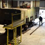 - Levage et translation du tender pour l’ aligner et le déposer sur la voie de sortie,