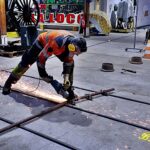- déplacement du pont transbordeur en limite de propriété, démontage des voies provisoires et rangement.