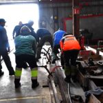 Bonjour à tous, Séance prolifique s’ il en fut qui nous a permis de translater puis déplacer notre ancien tender sur le pont transbordeur qui avait été préparé à la séance précédente. Tous les compagnons présents ont été mis a contribution pour cette périlleuse mais très surveillée manœuvre!